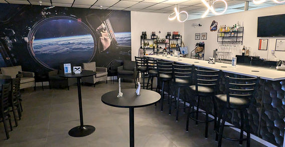Celebrate at Zero Gravity Wine Bar, Titusville’s space-themed venue for intimate gatherings up to 40 guests. Enjoy a cozy, cosmic atmosphere with self-serve wine dispensers, craft beer, and sparkling selections.
